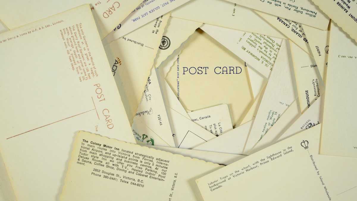 Postcards are a reminder of the days when the mail carried messages from abroad, a special trip or maybe just a moment in time. They connected people to a time and place. Often with eye-catching graphics or photographs, the personal text sent to the reader was welcoming, familiar and even exotic. In our age of instant, and constant communication, these small paper ephemera have become relics of the past. What remains are poignant, handwritten messages that were sent through the mail and travelled far and wide to someone special.