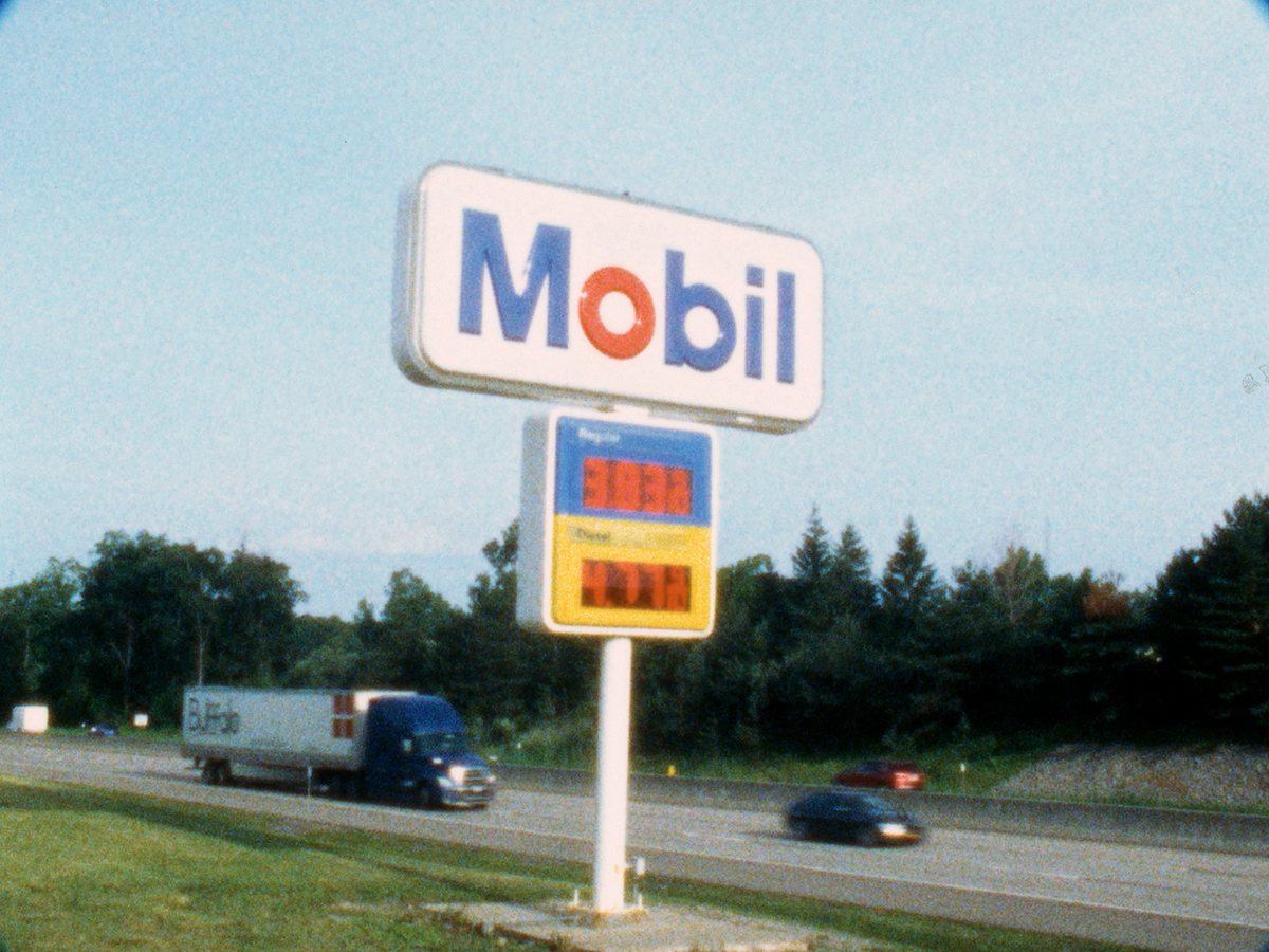 Cars roaring by on the interstate highways, glossy gas station pumps calling for customers and a sea of patriotic American flags – this is the iconic Road Trip, a well established pilgrimage for artists looking for visual inspiration within the vast American urban landscape. It became a 20th century rite of passage for photographers Walker Evans, Robert Frank and Stephen Shore and now continues into the 21st century with contemporary artists. Road Trip is a travelogue documenting a quick trip from Buffalo, New York, to Providence, Rhode Island, and back. Inspired by Jack Kerouac’s On The Road (1957), the film focuses on unique American imagery from the Prairie style houses of Frank Lloyd Wright to highways, flags, churches and even a T-model Ford weathervane. Peering out the window of a moving car, Road Trip shows the American road trip well travelled and still inspiring.